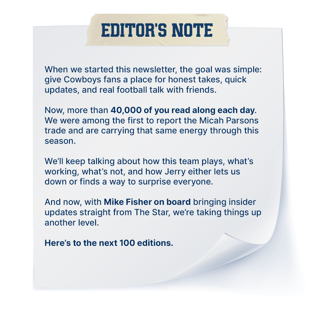 It’s a special day for us as this is the 100th edition of Cowboys Huddle! We couldn’t have reached this milestone without you. To mark the occasion, our Editor has penned a special note of gratitude. So here’s to America’s Team, and to you for riding with us. Now, let’s dive into your daily dose of the Dallas Cowboys!